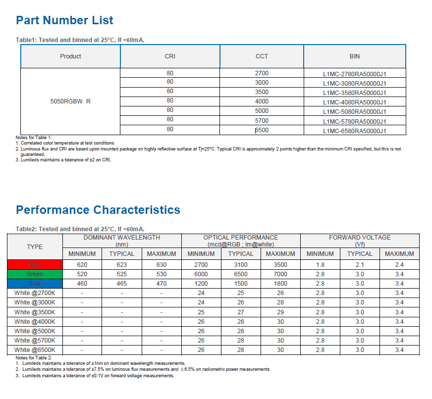 LUMILEDS 5050RGBW 四合一led灯珠2W RA80